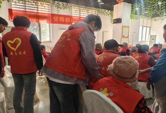 當(dāng)天下午,志愿者們一抵達(dá)養(yǎng)老院,便迅速分組投入到活動(dòng)當(dāng)中。有人俯身傾聽老人們的人生故事,送上真摯的問候與祝福,在笑語盈盈間傳遞溫暖;有人推著輪椅,陪伴老人漫步于秋日柔和的陽光里,步履緩緩,時(shí)光仿佛也溫柔下來;還有人小心攙扶著長(zhǎng)者,協(xié)助他們活動(dòng)身體,一舉一動(dòng)間盡顯耐心與關(guān)懷。整個(gè)養(yǎng)老院洋溢著歡聲笑語,沉浸在一片和樂融融的氛圍之中。